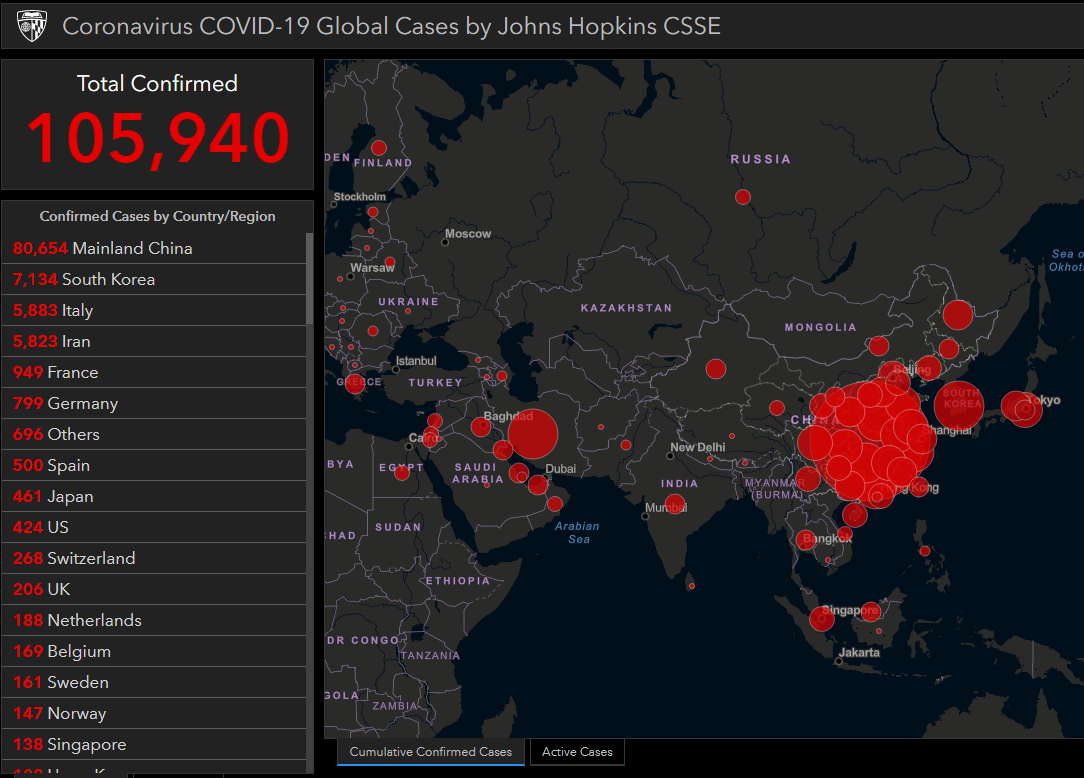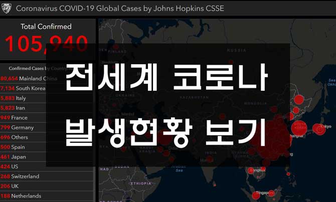 전세계 코로나 확진 현황 보는 사이트 (존스홉킨스)