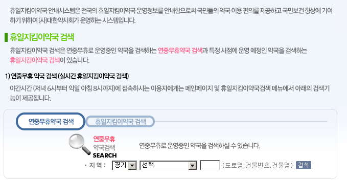 이제 휴일에 아파도 약을 구할 방법이 있는 셈이죠.