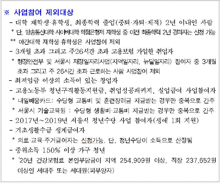 - 서울시 청년수당 신청일 이전 관련 사업참여 종료자는 신청 가능
