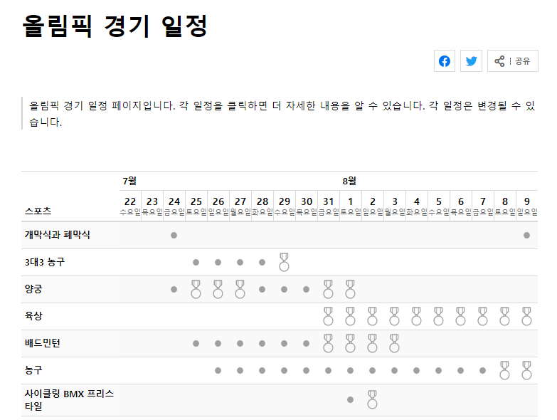 2020도쿄올림픽 일정은?