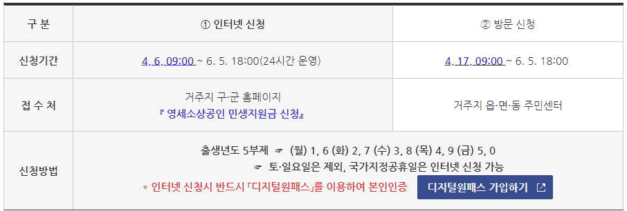 * 세부적인 사항은 구·군 홈페이지를 통해 확인