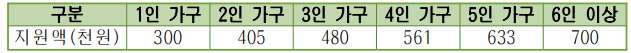 300천원~700천원 / 가구별 차등 지급합니다.