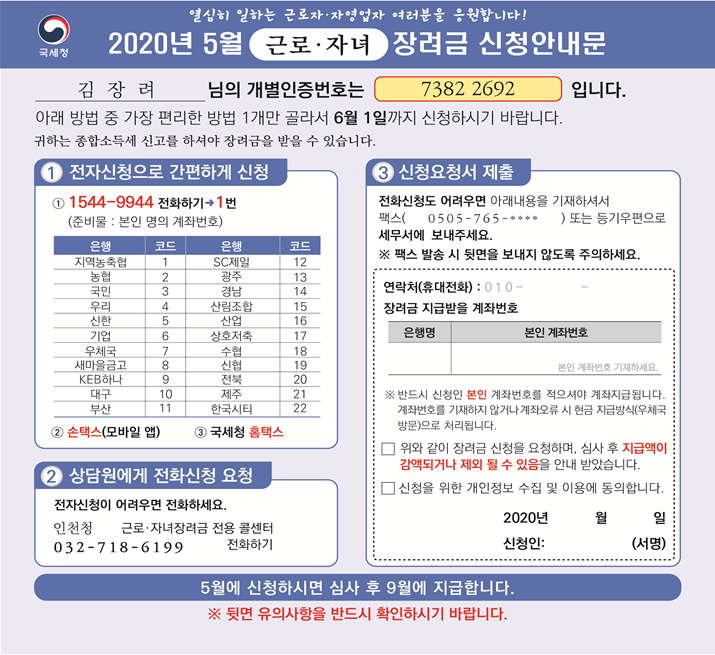 근로장려금, 자녀장려금 신청방법