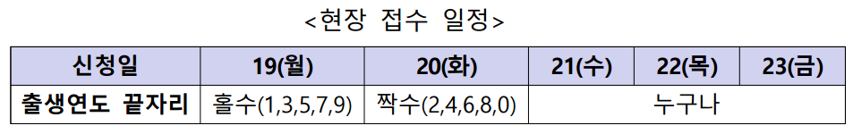 2020년 10월 19일(월)~10월 23일(금) 현장접수 신청을 받습니다.
