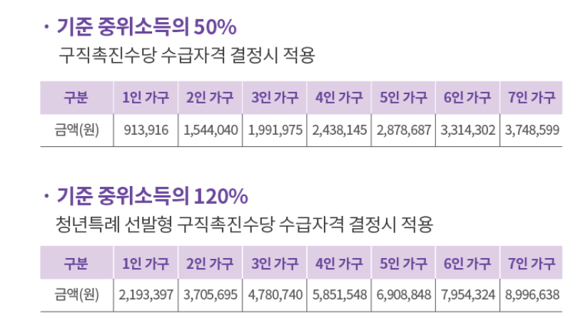 중위소득 50% 이하는 1인가구 91만원, 4인가구 244만원 이하입니다.