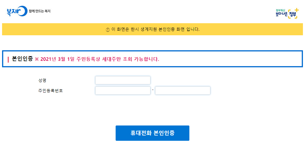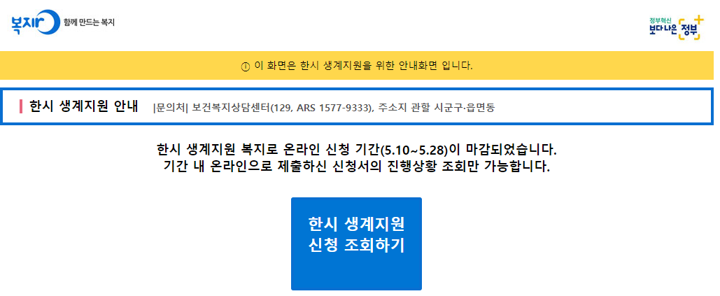 한시생계지원금 결과 조회 방법