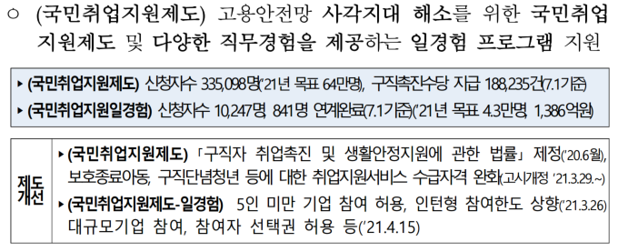 정부에서 국민취업지원제도라는 이름으로 저소득구직자, 청년실업자, 경력단절여성, 중장년층 등 취업취약계층을 대상으로 취업지원서비스 및 생계지원을 하는 서비스를 추진하고 있습니다.