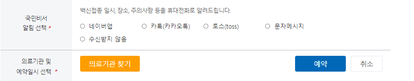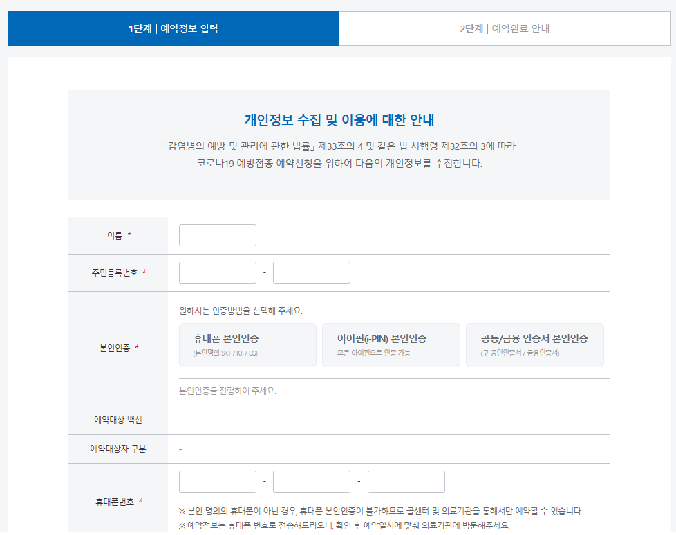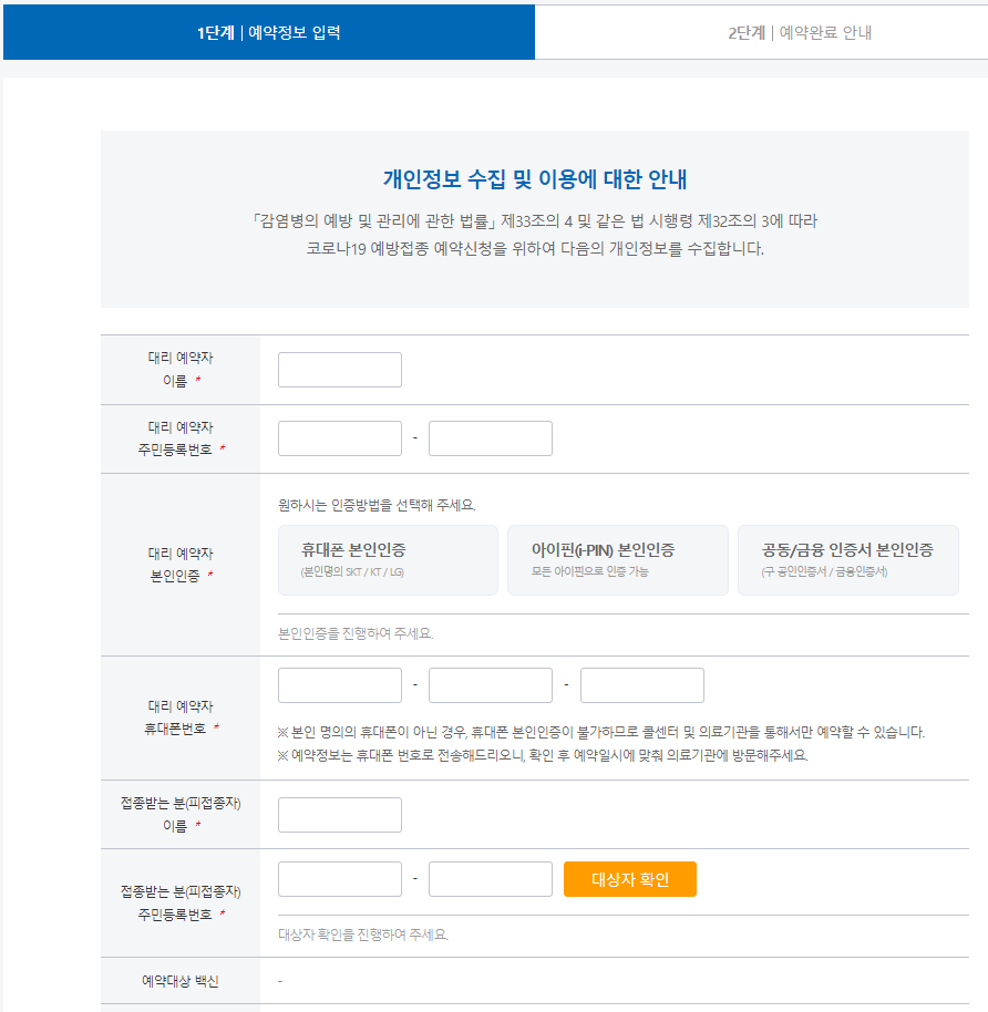 백신접종 예약 1단계