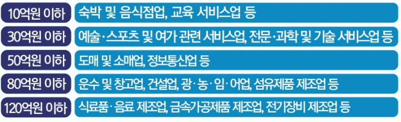 (120억원 이하) 식료품‧음료 제조업, 금속가공제품 제조업, 전기장비 제조업 등