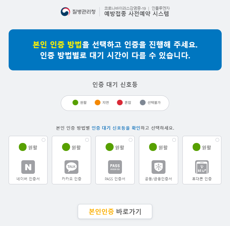 코로나 백신 접종 예약 시스템 홈페이지 본인인증