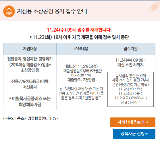 저신용 소상공인을 위한 정부지원 소상공인 융자 프로그램도 시행중입니다. 참고하세요!