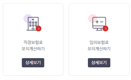 이중에서 지역보험료 계산 또는 직장보험료 모의계산하기를 눌러서 건강보험료 계산이 가능합니다.