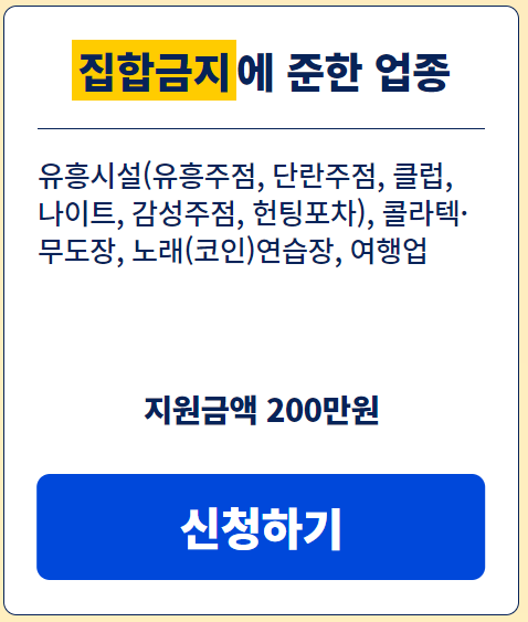 영업금지에 준한 업종 (집합금지) 200만원