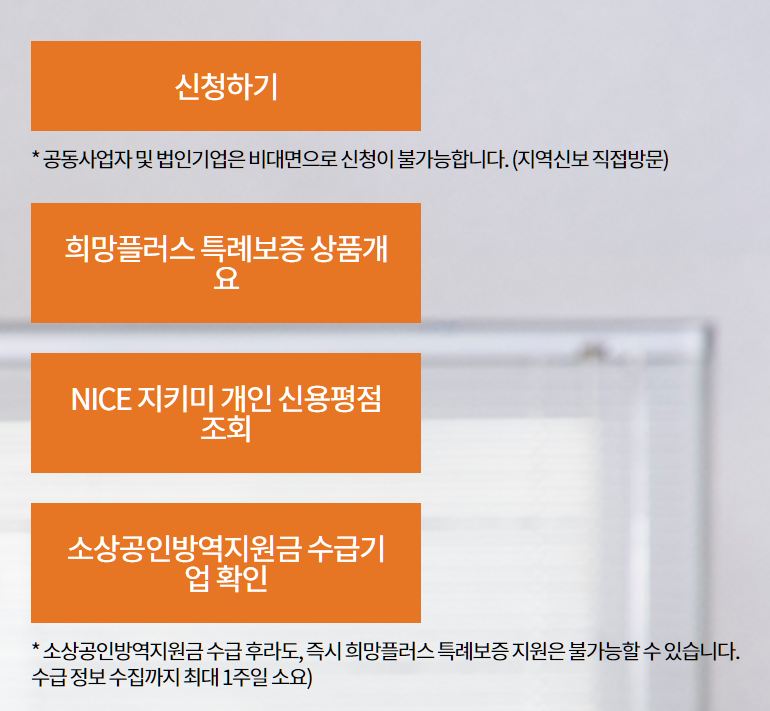 소상공인 희망플러스 특례보증 신청 홈페이지 바로가기
