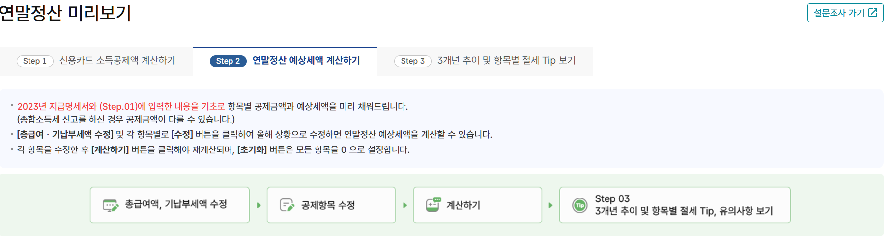 - 환급금 확인: 입력한 데이터를 바탕으로 예상 환급금이나 추가 납부 금액을 확인할 수 있습니다.