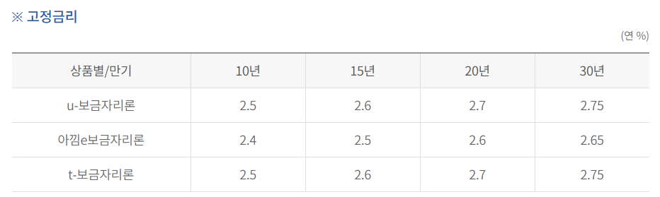 보금자리론 금리안내
