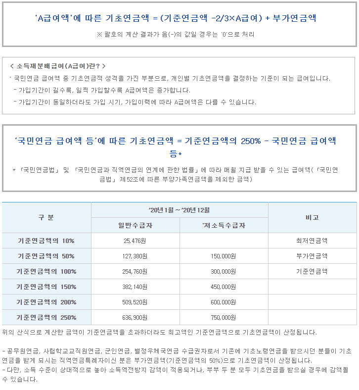 - ’20.1월 ~ ’20.12월 : (일반수급자) 월 254,760원, (저소득수급자) 월 300,000원